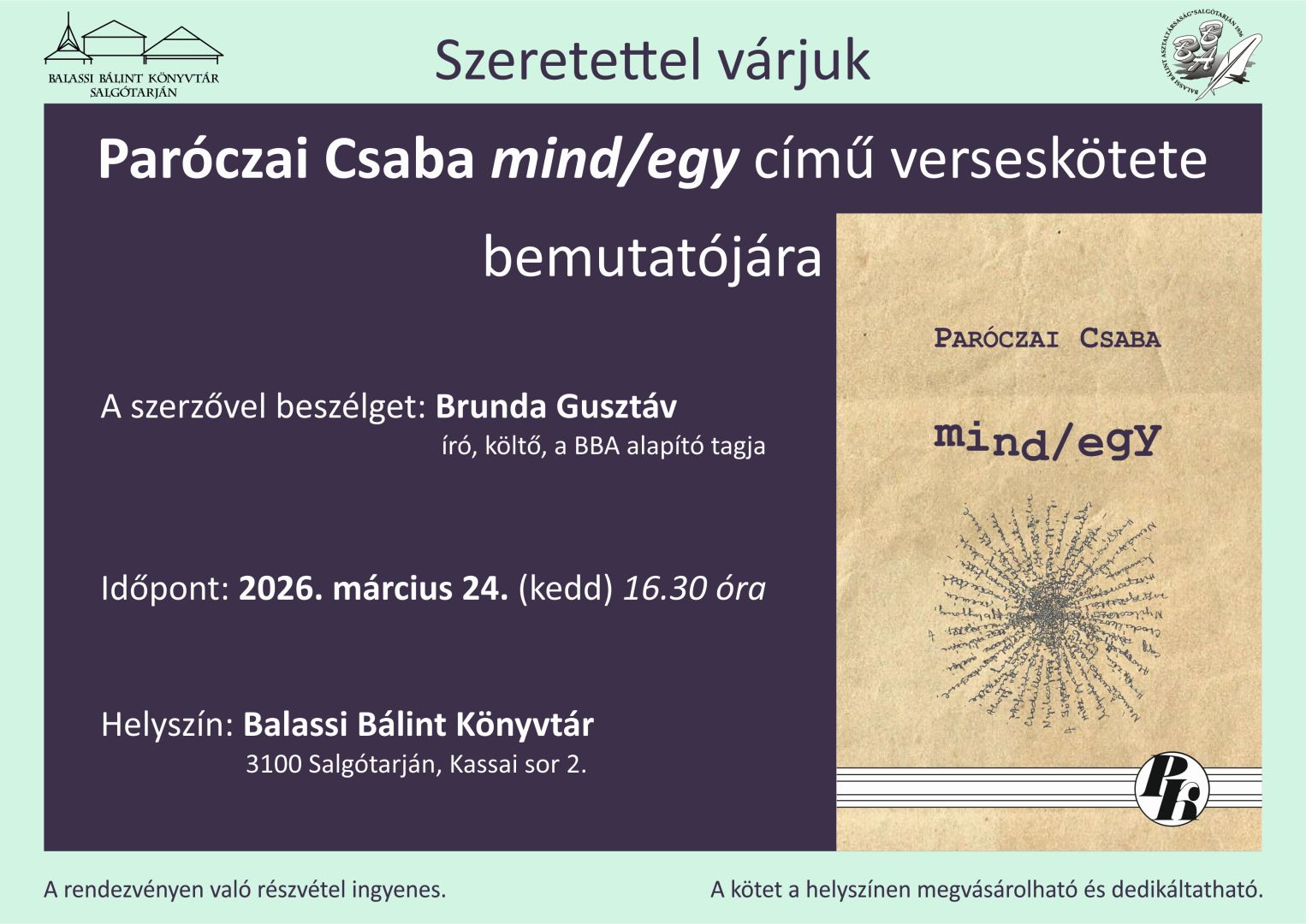 Paróczai Csaba: mind/egy - Könyvbemutató - 2026. március 24.