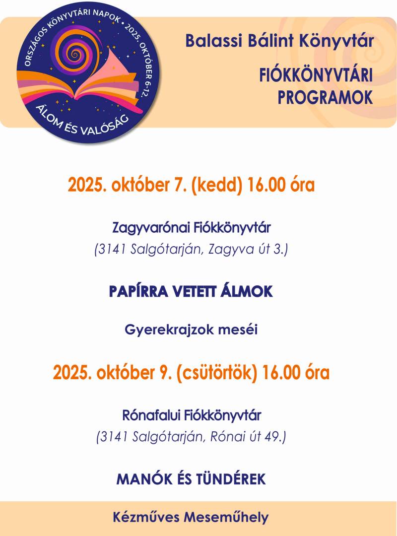 Az Országos Könyvtári Napok alkalmából Fiókkönyvtáraink az alábbi programokkal várják Önöket.