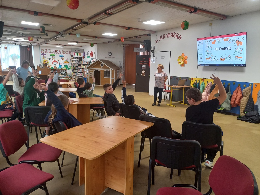 A gyerekek lelkesen válaszoltak a kérdésekre és sok újdonságot tudtak meg a kutyákról. A foglalkozás után mindenki körülnézett a könyvtár polcain, válogatta az érdekes könyveket és kölcsönöztek maguknak néhány olvasnivalót. 🙂