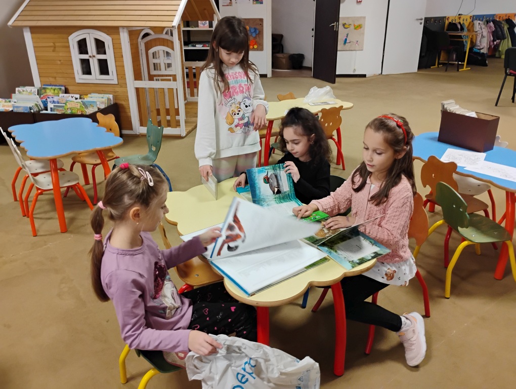 A Gagarin Általános Iskola 4. c. osztályos tanulói pénteken egy könnyed mesés kvízjátékkal kezdték a könyvtári foglalkozást, ahol régi és új rajzfilmeket kellett felismerni plakátrészlet és zene alapján. A kvíz helyes megoldása után egy író nevét olvasták össze a jó válasz betűiből, ami mind a négy csoportnak sikerült. Itt már rögtön kedvet kaptak a könyvek böngészésére, így mentek keresgélni az olvasnivalók között.